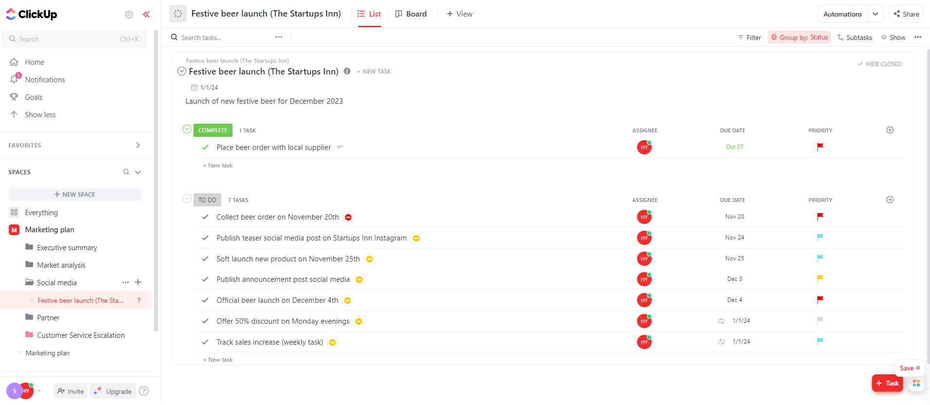 Top 5 action plan templates for small businesses – with examples An action plan is used to break down project goals into practical, easy-to-follow steps. Here’s our top templates for designing one to achieve the perfect project outcome. Written by Helena Young Updated on 11 August 2023 Our Research Our expert team of writers and researchers rates project management software against the factors small businesses care about most - value for money (for both small and growing teams); depth of features; ease of use; quality of templates and ability to customise them, plus help and support when problems need resolving. Written and reviewed by: Helena Young Lead Writer Our independent reviews are funded in part by affiliate commissions, at no extra cost to our readers. An action plan is a checklist of every task needed to achieve a larger business goal, and it can help you turn your top-level strategic planning into a day-to-day reality. Action plan templates are pre-built task lists that come ready-made for short, time-bound project management, helping businesses to avoid long and convoluted workflows.Most project management (PM) systems include an action plan template as they are popular among business owners. However, some systems lack key features, like the ability to assign tasks. Not having these useful tools can delay your action plan and can end up costing time and money – not something SMEs need in the current economy. Best Action Plan Templates at a glance monday.com template – for client service teams receiving regular feedbackClickUp Free template – for freelancers working on a daily task listSmartsheet template – for complex action plans with multiple stakeholdersWrike Free template – for working with subcontractors outside the businessAsana template – for developing a short, sprint-based action plan Alongside an independent analyst, our experts have pinpointed a range of outstanding action plan templates that will achieve a positive outcome by ensuring you meet every task on time, and to budget.In this guide, we’ll take you through the unique features of each option as well as where they perform best (and what they might be lacking) so you can find the template that best matches your objectives. This article will cover: What is an action plan template? Best action plan templates How to build an action plan Our research methodology Verdict Action plan template FAQs What is an action plan template?An action plan is a document that lists the tasks and milestones required to reach a decided outcome, in order of when they must be completed. It is one of the most basic project management methods, and is designed to breakdown your plan into the simplest sequence of steps.Some people choose to build their action plan on basic, web-based programmes, like Google Sheets. But this can take a lot of time to set up and require a lot of complex workarounds. Having a pre-built action plan template with project management software can get you started instantly and give you access to clever, time-saving features.Rather than planning a new campaign with multiple outcomes and deliverables, most action plans are kept to a minimum, and designed with a specific goal in mind. For example, the desire to increase traffic to your website in a set amount of time.The most common aspects of an action plan are:Tasks (description of what needs to be done)Deadlines (when it is due)Owners (who is responsible for the task’s completion)Milestones (what specific targets you need to hit to complete the task)Resources (the budget or external/internal consultants needed to complete the task) Best action plan templatesAs the name suggests, action plans are all about efficient decision making, allowing you to dive into a project as quickly as possible. Below, we’ve identified the top template choices from leading work operating systems (Work OS), including monday.com and ClickUp.All of our top picks are based on important factors chosen during extensive user testing, such as ease-of-use, data visualisation, and collaboration features.monday.com for teams receiving regular client feedback (agencies)Available with: Free planmonday.com is our top-scoring Work OS for data visualisation (5 out of 5), beating rival software Smartsheet by a whole point. As the above example shows, monday.com’s modern-looking template is endlessly customisable, which allows you to monitor every aspect of your project.During our testing, we found there was space to note tonnes of metrics, including the owner of a task, the due date, and even priority level. Plus, a progress tracker helps managers check pace in case a team member needs to push the pedal down to meet a milestone.Because of its flexibility, we recommend monday.com’s action plan template for projects that are subject to sudden changes. For example, design agencies working to deadline constraints with clients who want regular feedback on how a task is going.You can use monday’s customisable features to easily make edits. Our research team was also impressed by the app’s simple, traffic-light organisational system during testing, which means you won’t have to sacrifice clarity to review progress.monday.com pros and cons Pros Assigned team members will be instantly notified - minimising time spent in meetings. monday.com is third in our research for usability, as templates are quick to set up Managers can easily set up an automated reminder if tasks are missed or delayed Cons User permissions only available on premium plans - so managers have less control over changes No task dependencies means you’ll find it harder to prioritise tasks Get the template Get started with the monday.com action plan template Try monday.com Download it today for free. ClickUp for freelancers needing a daily task listAvailable with: Free planClickUp’s action plan is as clearly organised and colour-coded, as with monday.com. However, the former’s list-based layout is suited 