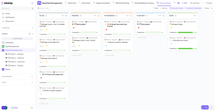7 best project management methodologies for small business What is a Kanban board? How do you plan a Scrum? We’ll talk you through the top project management methodologies and how to use them for maximum benefit. Written by Helena Young Updated on 8 June 2023 Our Research Our expert team of writers and researchers rates project management software against the factors small businesses care about most - value for money (for both small and growing teams); depth of features; ease of use; quality of templates and ability to customise them, plus help and support when problems need resolving. Written and reviewed by: Helena Young Lead Writer Our independent reviews are funded in part by affiliate commissions, at no extra cost to our readers. Project management (PM) methodologies can be difficult to interpret. If you so much as dip a toe into the project management software market then you’ll likely be flooded with advice on using various techniques including ‘Kanban’, ‘Agile’, and ‘Scrum’.It can be tricky to work out how these methodologies actually work in practice. Each approach comes with advantages and disadvantages, and some pretty fierce defenders and detractors.Below, we’ll explain the seven top project management methods you should be aware of, as well as how each could be applied and what kind of teams and projects they’re best suited towards.By the end, you’ll be able to make a confident decision about which is the best fit for your business’s goals, KPIs and objectives. The top 7 project management methodologies are: Agile project management Waterfall project management Integrated Project Management (IPM) Kanban project management Scrum project management Scrumban project management Critical Path Method (CPM) project management How we test project management software for small businesses Which project management methodology is right for your business? Project management methodologies FAQs How do we carry out our software research? We've been advising SMEs on the top business tools in the UK for over 20 years. As part of our stringent research methodology, we use a combination of user testing and independent analysis to ensure that all of our results are accurate and updated for startups in 2024.Our most recent round of research included identifying the top 11 best project management (PM) systems on the market using six metrics:Value for moneyEase of useCustomer scoreTemplate customisationFeature offeringHelp and support featuresOnce completed, we used these scores to evaluate each software to examine how well its features align with / support specific project methodologies. Agile project managementWrike's Agile project template gave us an interactive timeline to track progress as we moved through each project phase Agile Pros Continuous testing means any issues are addressed early on. Agile Cons Built for complex project delivery - unsuitable for simple client tasks. Following the agile methodology, your project will be iterative. It will move through a series of cycles one-at-a-time, with all resources being focused on one phase – otherwise known as a ‘sprint’ – at a time. Because of this:It is time-efficientIt has lots of achievable milestonesIt encourages collaborationThere are disadvantages to agile. Naturally, you’ll need to spend a lot of time communicating with clients, which can lead to delays.But overall this is a great, test-driven technique for streamlining work processes. By addressing customer feedback frequently, you’ll save a lot of time and hassle by identifying and preventing complaints before they occur.When to use Agile project management:Agile is a great method for client projects. Customers get a breakdown of the project at various checkpoints. During these meetings, they’ll be able to share their impressions and inputs, so teams have a chance to respond to any suggestions or requests.Best template for agile project management: WrikeWhen you're working quickly, information can get confused. Wrike's Agile project management template is organised into clearly-defined blocks. We found the app's simple layout easy to navigate, making it easy for us to stay on top of task deadlines as we moved through each project phase. Waterfall project managementWhen testing the ClickUp Waterfall template, we liked that it clearly mapped out each phase of the project timeline Waterfall Pros The project scope, cost, and timeline are clearly outlined. Clients know exactly what will be delivered. Waterfall Cons Phases can’t be edited once completed so you’ll need very detailed briefs from clients. Like the Agile method, Waterfall involves dissecting a project plan into consumable ‘phases’. However, whereas an Agile approach is iterative, the Waterfall approach is sequential. It relies on teams never moving forward until the previous phase in a project has been completed. Because of this:It is data-backedIt has a clear structureIt is easy to planAn issue with the Waterfall method is that it does not invite customer feedback. Evaluation is deferred until bigger parts of the project are complete. This means that issues can be harder to fix without substantial time and effort.When to use Waterfall project management:We recommend Waterfall as a great option for shorter projects with objectives that are easy to define from the start. For example, rolling out a one-off product discount.Best template for waterfall project management: ClickUpWe recommend ClickUp as the best template for Waterfall project management. Its task dependencies feature is made for the Waterfall methodology. Through it, we were able to add “blocking” or “waiting on” tags to tasks to illustrate a clear order so we knew exactly which card to prioritise. Integrated project management (IPM)ClickUp's huge list of features made it easy for us to share lots of project resources in IPM IPM Pros Team members share documents and meet regularly, helping to keep everyone in 