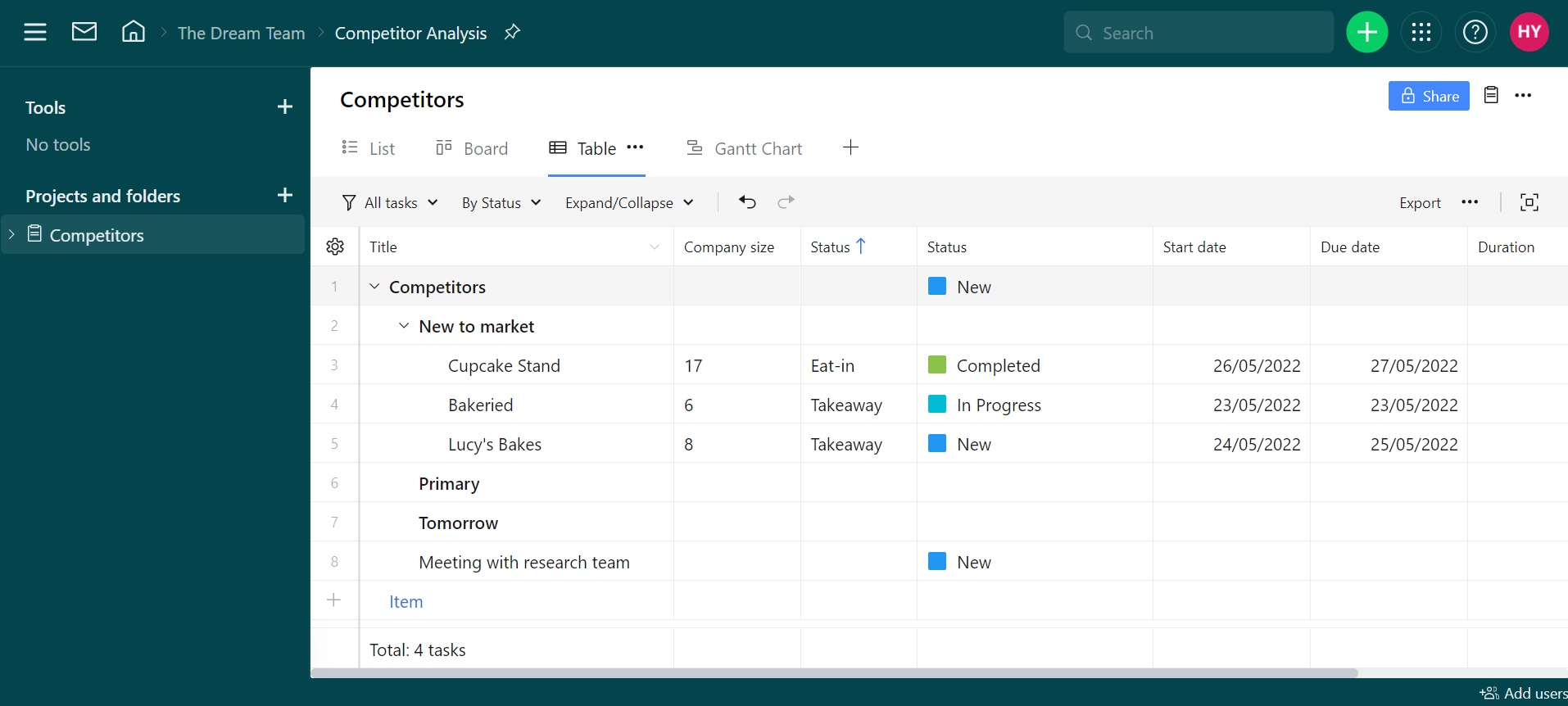 5 free competitor analysis templates for small businesses Competitor analysis is an important first step for new businesses. Here are our top free templates to beat your rivals or learn from the very best. Written by Helena Young Updated on 6 June 2023 Our Research Our expert team of writers and researchers rates project management software against the factors small businesses care about most - value for money (for both small and growing teams); depth of features; ease of use; quality of templates and ability to customise them, plus help and support when problems need resolving. Written and reviewed by: Helena Young Lead Writer Our independent reviews are funded in part by affiliate commissions, at no extra cost to our readers. Competitor analysis is a fundamental aspect of a startup's strategic planning. To beat your rivals, you first need to understand who you’re running against – as well as the right template to get started.Results from competitor analysis (also known as a competitive analysis) can determine key aspects of your business plan. This includes: the type of product inventory you stock, an identified audience demographic, and your core market strategy.But competitor analysis requires careful organisation. Fail to capture the correct information at this stage, and you could cause your business to stumble and fall. Having a competitor analysis template helps to avoid such mistakes.Our experts have spent more than 20 years helping people to launch or grow their startups. This guide will go through the best free competitor analysis templates, helping you to plan your research and, ultimately, grow your market share.More on this: keep your business plan humming with our top small business project management systems. Best Competitor Analysis Templates 2024 Wrike – best for team collaborationmonday.com – best for data visualisationSmartsheet – best for data interpretationAsana – best for customer researchConfluence – best for printable format Click to explore the best templates for competitor analysis you can try today: Competitor Analysis by Wrike Competitor Analysis by monday.com Competitor Analysis by Smartsheet User Research by Asana Competitive Analysis by Confluence What is competitive analysis? How did we find the best competitor analysis templates? How to write a competitive analysis: 5 step guide How we test project management software for small businesses FAQs Best competitor analysis templates to use (+ examples)Below, we’ve picked five example competitor analysis templates from brands such as Wrike, monday.com, Smartsheet, and more. All of these user-friendly frameworks are available as a free trial or are completely free.Most of the templates offer a table or spreadsheet-style format. Generally speaking, spreadsheets make it simpler to highlight patterns and trends in data in a visual way, helping build a competitor profile to monitor everything from customer behaviour to marketing trends.We’ve also picked out great competitor analysis templates that make things easy for your market research, thanks to their simple customisation and generous data allowances.All of the competitor analysis templates below are accessible and simple to use. Some are free for life – provided you sign up to a basic level plan that suits solo business starters or very small teams. For larger teams, you may need to step up to a paid plan, but there are free trials to let you test the template first. 1. Competitor analysis template: Wrike (best for team collaboration)Wrike's user-centric, simple design makes for a smooth and intuitive experience for newbies, and the platform's free competitor analysis template scored highly in our testing for usability.Based on our knowledge and understanding of small businesses, we think the Wrike template for competitor analysis is ideal for teams with more than five employees looking to grow the business. It's has the gentlest learning curve and lots of tools for working together as a team.Results from our user testing:Wrike’s clean, easily navigable layout lends itself well to multiple assignees working at the same time.We particularly liked the Wrike feature called ‘Stream’ which provides a feed of all the project updates. Under each update you can leave a comment, so any notable findings can be easily highlighted.Wrike's Folders made it easy to categorise competitors eg. as primary or secondary, or new to market.Wrike’s free plan permits unlimited guests. We were able to invite external collaborators to view or edit it. 2. Competitor analysis template: monday.com (best for data visualisation)monday.com’s simple, colour-coded format means even startups in particularly competitive industries can identify the strengths and weaknesses of hundreds of rivals in one quick look.The example competitor analysis template is completely free to use, although it is only available as part of the platforms 14-day free trial. After this, users will need to pay £7 per month to maintain access to all of monday's benefits.Results from our user testing:Tasks are cleverly colour-coded as either red (there’s an issue), orange (there’s a threat), and green (there’s an opportunity) so we could easily see market opportunities as they emerged.We were able to input custom fields to highlight industry-specific features among rivals, as shown in the example competitor analysis template above.monday.com was excellent for customisation. We could add widgets to measure bespoke metrics about rivals and, thanks to a recent monday.com update, rebrand webforms to help with audience research.It took us just one minute to get set up. monday.com makes things doubly simple by opening a pop-up which prompts you to add teammates and specify their permissions immediately. 3. Competitor analysis template: Smartsheet (best for interpreting data)Smartsheet is a powerful, spreadsheet-based tool that specialises in translating sophisticated data into legible gra